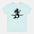 Our mermaid finding her sanctuary with her starfish friend aboard a paddleboard printed on a soft tee.